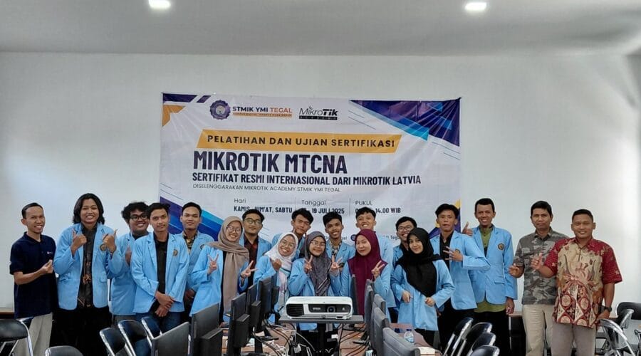 Tegal, 19 Juli 2025 – STMIK YMI Tegal terus berkomitmen meningkatkan kualitas lulusannya melalui berbagai program penguatan kompetensi. Salah satu upaya nyata yang dilakukan adalah melalui kegiatan Pelatihan dan Uji Kompetensi MikroTik MTCNA (MikroTik Certified Network Associate) yang digelar pada tanggal 17 -19 Juli 2025 di Laboratorium Jaringan Komputer STMIK YMI Tegal. Kegiatan ini diikuti oleh 44 mahasiswa dari Program Studi Teknik Informatika dan Sistem Informasi. Pelaksanaan kegiatan dibagi ke...Read More